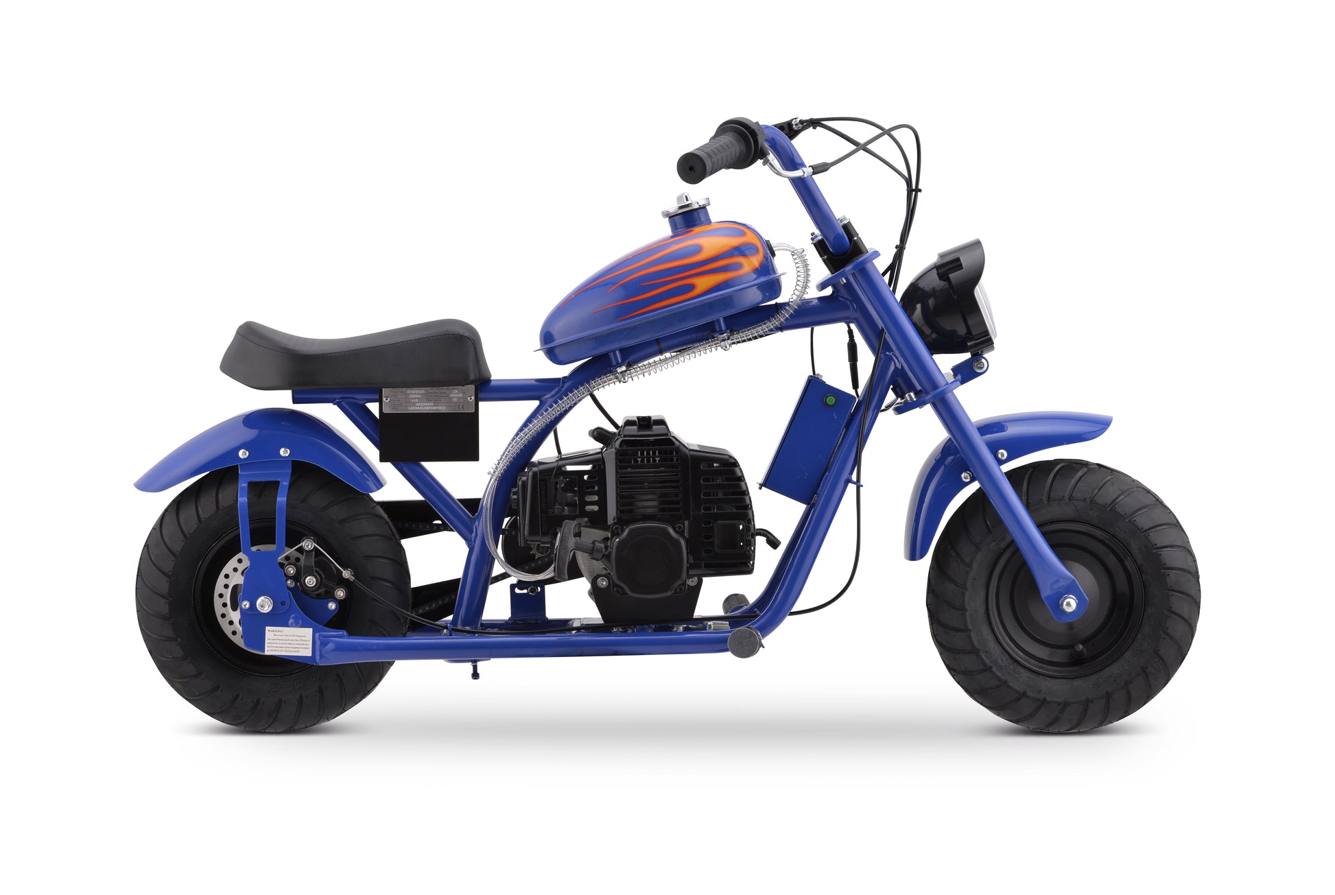 BLUE GBMOTO Mini Chopper Style kid Bike, 49.4 CC 2-Stroke Dirt Bike with Big Headlight, Premium Tire, Metal Frame, Disc Brakes, Max Load 165Lbs, Up to 20Mph, EPA Approved
