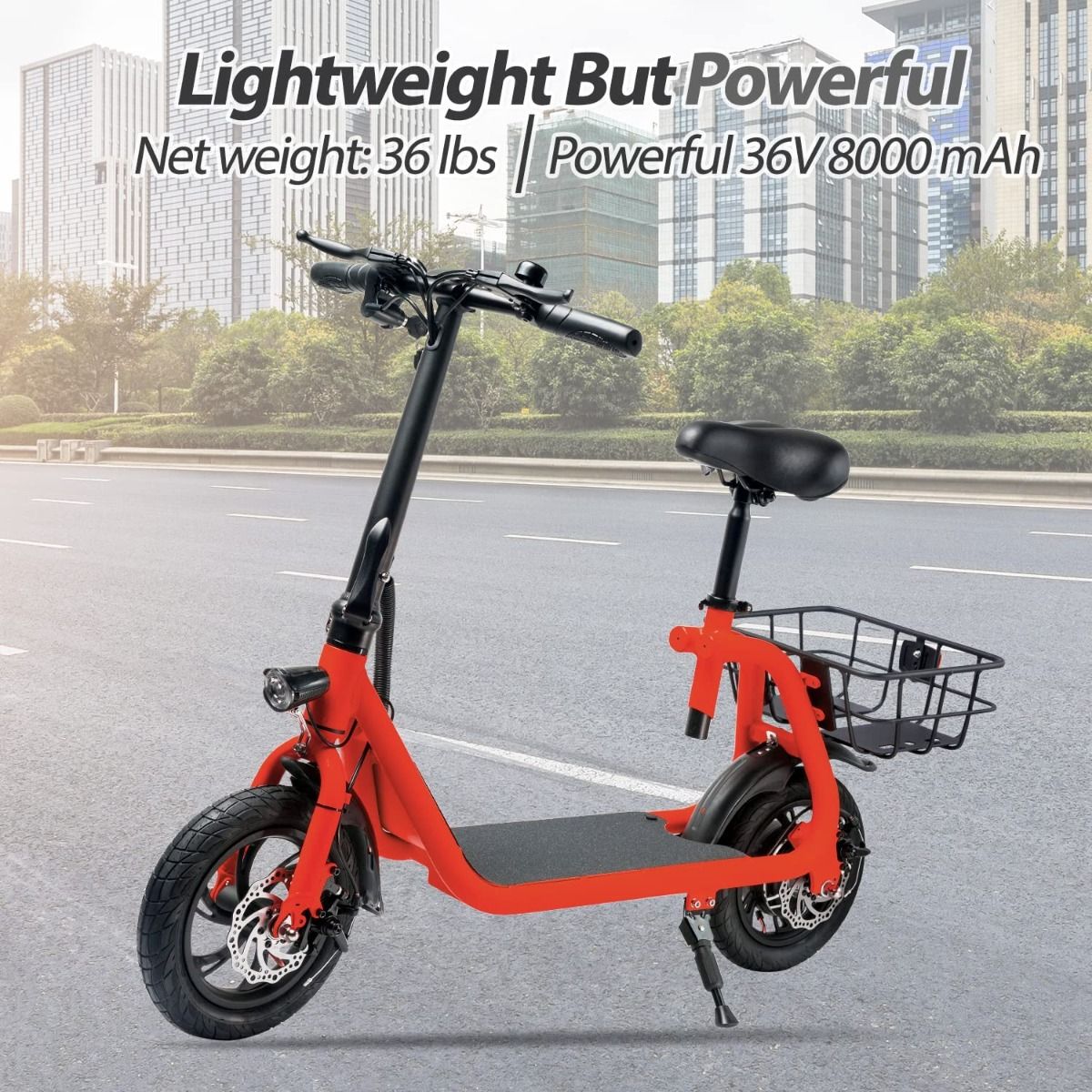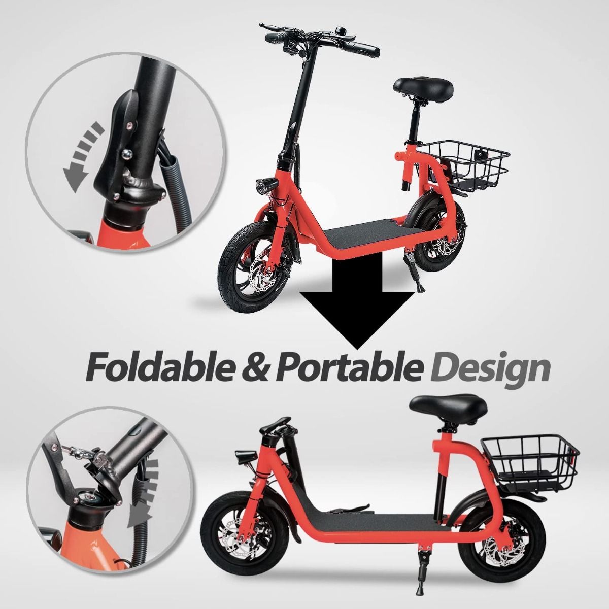 RED - Commuter Electric Scooter for Adults - Foldable Scooter with Seat & Carry Basket