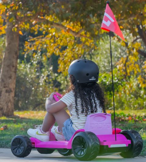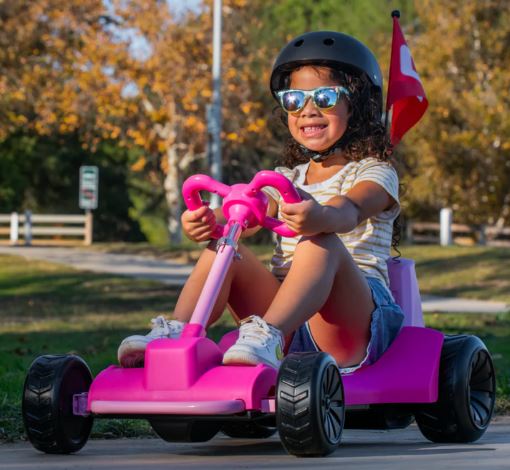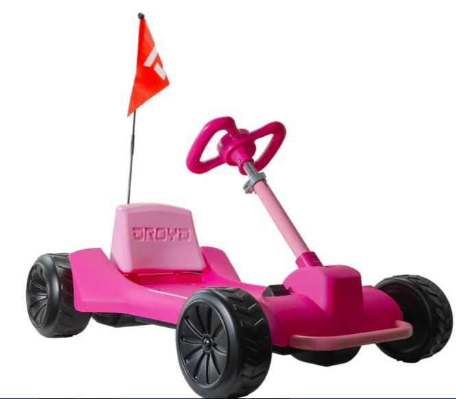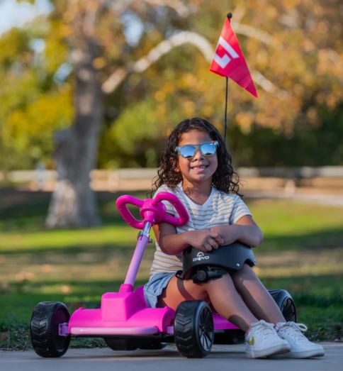 Droyd Zypster is a mini electric go-kart made specifically for kids 3 to 6 years old that introduces them to the fun world of electric ride-ons! Built on a steel frame and plastic body, Zypster includes a 24v lithium-ion battery, a light-up LED battery indicator, and a brushed DC motor. Designed for toddlers, Zypster features parent-trusted safety features including a smooth-launch control pedal and an electromechanical brake that rolls to a stop when the pedal is released to help prevent accidental launches. Zypster also includes built-in parental speed controls where parents can use a key to lock in its speed at 3 or 6 mph for added safety while letting little ones cruise around!