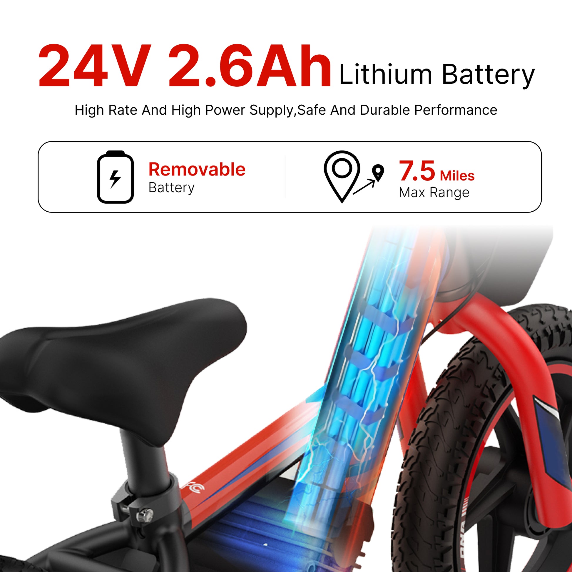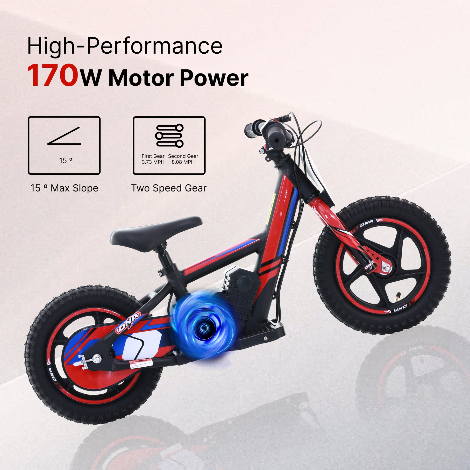 RED - 24V Electric Dirt Bike for Kids, 12" Wheel Electric Balance Bike for Ages 3-6